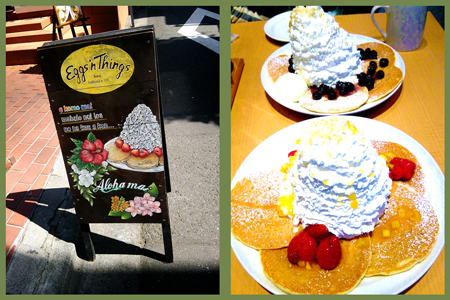 生クリームてんこ盛りのハワイアンパンケーキを食べました、
