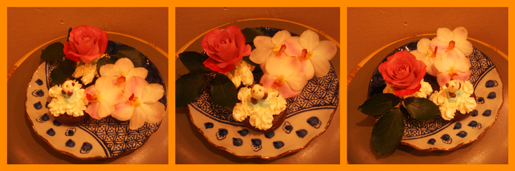 お花はバラ(赤紫にちかいピンク色)とオーキッド(白色・もものはないろ)ですっっっ♪