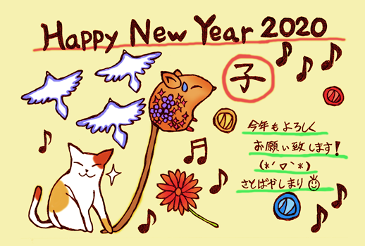お年賀絵はねずみさんとねこさん♪☆+.。゚+..。゚+. ♪╭( ・ㅂ・)و グッ ! .。゚+..。゚+☆