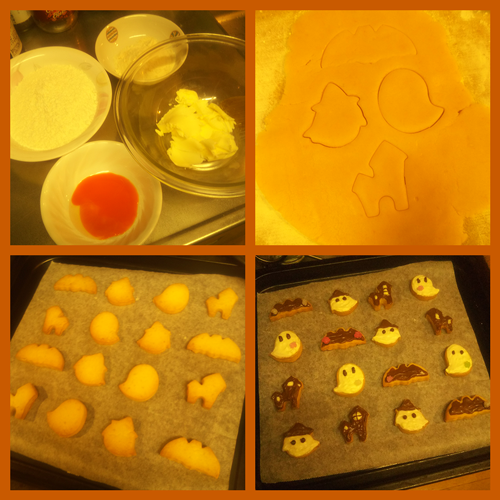 ハロウィン型抜きクッキーづくり・あげいんをしてみました♪☆+..。゚+. ♪╭( ・ㅂ・)و グッ ! +..。゚+☆