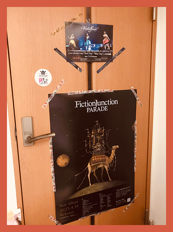 まい部屋のドアに貼っています、よこを向くとポスターがみえるので、